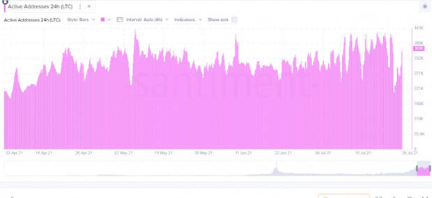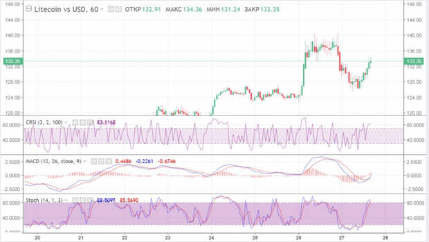 Показатели Litecoin показали отличный прирост за последние два дня, благодаря чему актив преодолел и закрепился над ключевой зоной поддержки в районе 140$. 27 июля криптовалюта начала с небольшого падения, спровоцированного рыночной коррекцией. По состоянию на 16:00 альткоин котируется в районе 130$ и консолидирует цену для дальнейшего движения к отметке в 140$-150$. Стоит отметить, что ончейн-показатели LTC просели из-за мощного роста других криптовалют, но вновь начали восстанавливаться. Количество активных адресов в сети Лайткоина подбирается к отметке в 400 тысяч, но падает общая сумма транзакций в сети криптомонеты. Это связано с растущим спросом на другие активы, которые показывают больший прирост. Несмотря на это технические индикаторы криптовалюты, а также постепенно увеличивающиеся ончейн-показатели говорят о том, что в ближайшее время LTC пробьет отметку в 150$.