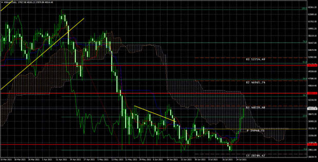 Впрочем, как мы уже говорили в предыдущих статьях, далеко не факт, что движение вверх продолжится выше уровня 40 700$, который, напомним, является верхней границей бокового канала 29 700$ - 40 700$. Конечно, движение последних дней было не только сильным, но и стремительным. Однако, если трейдеры внимательно посмотрят на любой график криптовалюты, то увидят, что даже внутри текущего бокового канала такие движения уже были. Таким образом, мы по-прежнему считаем, что биткоин не продолжит свой рост и выполнит разворот вниз около уровня 40 700$. Конечно, на валютном или криптовалютном рынке никогда ни в чем нельзя быть уверенным на 100%. Другими словами, это не комментарии Маска или Вуд привели к росту курса биткоина. Это инвесторы покупали монеты, поэтому курс биткоина вырос. Соответственно, никто и никогда не может предсказать на 100% в какое время большинство инвесторов и трейдеров будут покупать, а когда продавать. Мы можем лишь предполагать. Таким образом, чисто теоретически в данное время может даже начаться новый восходящий тренд, хотя биткоин обычно по году-два консолидируется после завершения «бычьего» тренда. Мы хотим сказать, что возможно все, любой сценарий, но нам следует остановиться на каком-то одном. Поэтому, как и обычно, здесь может помочь только технический анализ. А технический анализ говорит, что сейчас имеется важный уровень 40 700$. Соответственно, от его преодоления или не преодоления будут зависеть дальнейшие перспективы биткоина.Тем временем, в Международном валютном фонде заявили, что биткоин несет в себе опасность для экономик множества стран, так как может вытеснить их национальные валюты. По словам директора отдела маркетинга МВФ Тобиаса Адриана и главного юрисконсульта и директора юридического отдела Роды Уикс-Браун, в странах с высокой инфляцией и недоступным банковским обслуживанием криптовалюты могут стать популярным средством расчета. В странах, где биткоин будет иметь статус национального платежного средства, будет невозможно бороться с отмыванием денег и финансированием терроризма. Также экономисты заявили, что майнинг криптовалют по-прежнему является очень неэкологичным. Мы же в свою очередь хотим напомнить, что фундаментальный фон остается для биткоина достаточно негативным. Рынки, конечно, уже отыграли большую часть негатива, а вечно на одних и тех же новостях биткоин дешеветь не может. Тем не менее, пока что мы не видим серьезных оснований для продолжения роста котировок «битка».