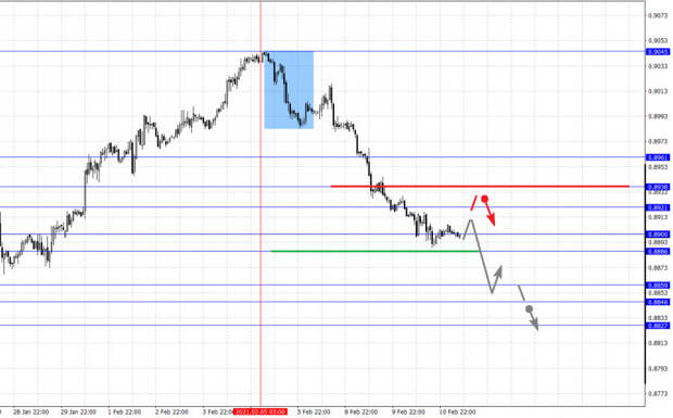 Краткосрочное восходящее движение возможно в коридоре 0.8921 – 0.8938, пробой последнего значения приведет к углубленной коррекции, здесь цель – 0.8960, этот уровень является ключевой поддержкой для низа.