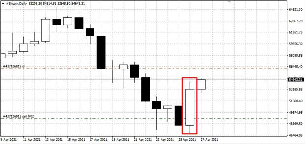 Общий вывод: 27.04.21 – можно продавать и покупать биткоин, так как разные виды анализа дают разные прогнозы.