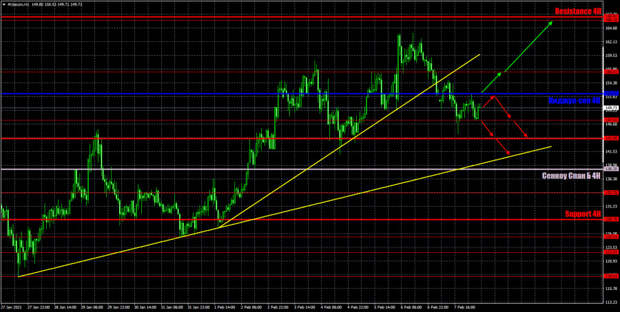 2) Медведи сделали первый шаг в направлении формирования нисходящего отрезка тренда, однако не смогли пока преодолеть уровень 147,43. Поэтому мы рекомендуем торговать на понижение с целями уровни поддержки 147,43 и 143,95, если цена опять отскочит от линии Киджун-сен. Take Profit в этом случае может составить до 700 пунктов. Также короткие позиции можно открывать с целью линия тренда, если медведям удастся закрепиться ниже уровня 147,43.