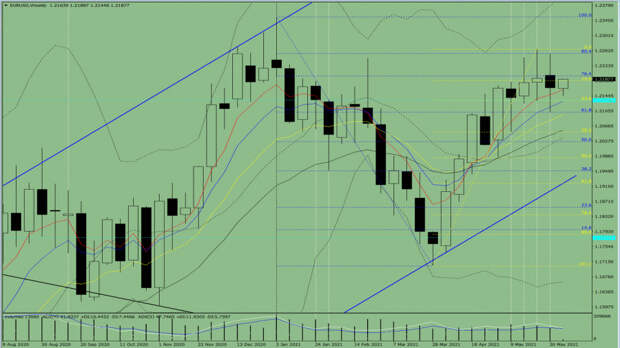 Общий итог расчёта свечи валютной пары EUR/USD по недельному графику: цена на неделе, вероятно, будет иметь восходящую тенденцию с отсутствием нижней тени у недельной белой свечи (понедельник – вверх) и наличием верхней тени (пятница – вниз).