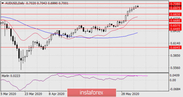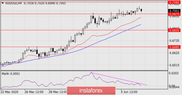 Возможно открытие продажи AUD/USD с преодолением ценой сигнальной поддержки 0.6975.