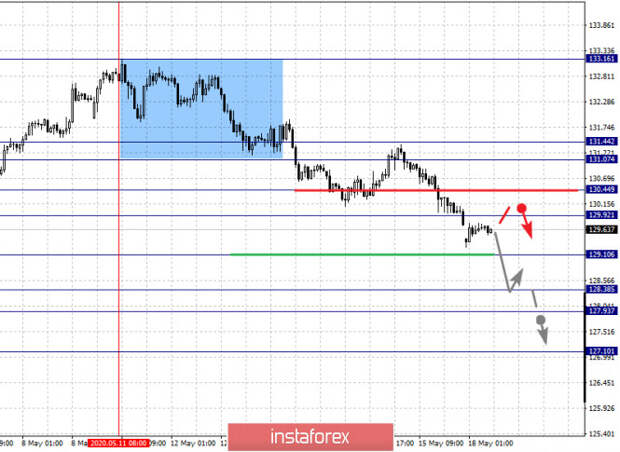 0831 – 1.0853, пробой последнего значения будет располагать к развитию восходящей тенденции, в данном случае первая цель – 1.0895. В качестве потенциального уровня для верха рассматриваем 1.0922, возле которого ожидаем консолидацию.Основная тенденция – формирование потенциала для низа от 13 мая