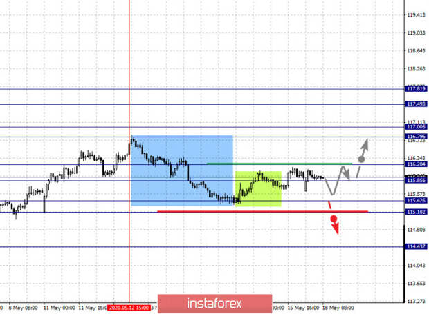 По паре Евро/Иена ключевыми уровнями в масштабе Н1 являются: 117.81, 117.49, 117.00, 116.79, 116.20, 115.85, 115.42, 115.18 и 114.43. Здесь развития нисходящей структуры от 12 мая ожидаем после прохода шумового диапазона 115.42 – 115.18, в данном случае потенциальная цель – 114.43. Краткосрочное восходящее движение возможно в диапазоне 115.85 – 116.20, пробой последнего значения будет располагать к последующему развития восходящей тенденции, здесь цель – 116.79. Проход ценой шумового диапазона 116.79 – 117.00 приведет к движению до уровня – 117.49. Потенциальным значением для верха считаем уровень 117.81, по достижении которого ожидаем консолидацию, а также откат книзу.