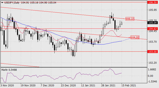 USD/JPYОптимизм на фондовых рынках подбадривает пару USD/JPY к дальнейшему росту с первой целью 105.32. В пятницу S&P500 подрост на 0,47%, сегодня утром Nikkei225 подскочил на 1,20%, S&P/ASX200 прибавляет 0,95%. В Китае и США сегодня национальные праздники.С преодолением целевого уровня 105.32 перед долларом открывается вторая и высокая цель 106.