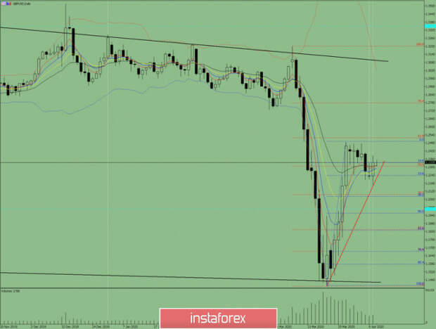 Сегодня возможно движение вверх с целью 1.2518 – откатный уровень 61.8% (красная пунктирная линия).