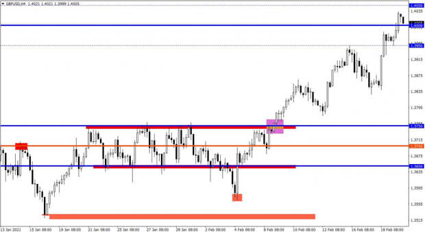 Стоит напомнить, что уровень 1,4000 за счет своего высокого статуса важности имеет границы отклонения +/-50 пунктов. В результате уровень 1,4000 выражен на рынке в виде диапазона 1,3950/1,4000/1,4050, где возникает взаимодействие цены с участниками рынка.