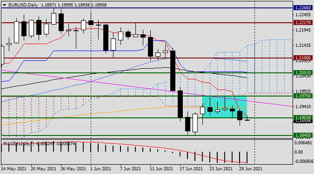 Если так, и инфляция в Германии продолжит расти, ЕЦБ получит карт-бланш для более раннего ужесточения своей денежно-кредитной политики, которое выльется, скорее всего, в сокращение объёмов программы величественного смягчения. Всё-таки говорить сейчас о начале цикла повышения процентных ставок считаю преждевременно.А вот индикатор потребительской уверенности в США превзошёл прогнозное значение 119 и по факту составил 127.3. Считаю, это весьма позитивным моментом, который подчёркивает, что экономика в Соединённых Штатах восстанавливается от COVID-19 весьма и весьма стремительными темпами. Сегодня уже среда, подождём пятничных отчётов по рынку труда, которые укрепят или опровергнут мнение о более быстром, чем ожидалось, восстановлении ведущей мировой экономики. Впрочем, и сегодня нас ожидает насыщенный денёк. Рекомендую обратить внимание на данные по рынку труда Германии, индекс потребительских цен еврозоны, а также на данные по занятости из США от ADP, которые зачастую являются или воспринимаются участниками рынка как опережающий индикатор официальных Nonfarm Payrolls. И последнее, на что хотелось бы обратить внимание перед рассмотрением графиков, так это то, что сегодня последний день месяца и рынок будет закрывать июньские торги, а это всегда таит в себе элемент неопределённости ценового движения.