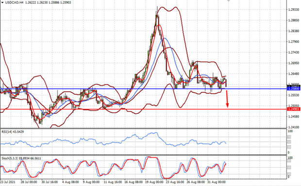 Пара USDCAD находится выше уровня 1.2580. Сильные данные по занятости из США приведут к прорыву этого уровня и падению пары к 1.2490.