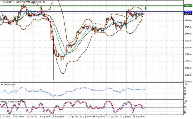 Цена на спотовое золото торгуется ниже уровня 1817.45, вытянувшись в тонкую линию. По-прежнему считаем, что позитивные данные в целом должны будут оказать поддержку цене на «желтый» металл, которая после преодоления этой отметки устремится к 1830.00.