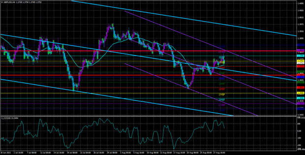 Евро рос во вторник благодаря довольно сильному отчету по европейской инфляции, а вот у фунта стерлингов не было никакой макроэкономической статистики в поддержке. Таким образом, в целом восходящая тенденция по фунт/доллару также сохраняется, но вот движение вверх нельзя назвать сильным. Мы уже говорили ранее, что терминал MT4 самостоятельно меняет масштаб в зависимости от тех движений, которые помещаются на графике за определенный период. Учитывая то, что волатильность сильно снизилась в последние месяцы, а пара уже больше 6 месяцев торгуется в канале 1,36 – 1,4240, то масштаб автоматически увеличен, что создает иллюзию силы текущих движений. На самом же деле от последнего локального минимума пара прошла вверх всего 180 пунктов, что не так уж и много. Особенно для фунта стерлингов, для которого нормальной считается волатильность 100-130 пунктов в день. Но сейчас идет речь о 60-80 пунктах в день, не более. В целом же, мы продолжаем ждать от пары, как минимум, возвращения к уровню 1,4240, который цена уже дважды отрабатывала в последние месяцы и дважды отскакивала от него. Так как медведям не удалось также преодолеть и диапазон 1,3600 – 1,3666, который также был несколько раз отработан за последние месяцы, то получается, что пара уже больше 6 месяцев находится в четком боковом канале. Следовательно, мы вправе ожидать сейчас движения к его верхней границе. Помимо этого, большинство технических и фундаментальных факторов продолжает свидетельствовать о сохранении глобального восходящего тренда. Таким образом, в более долгосрочной перспективе мы продолжаем рассчитывать на рост пары выше 1,4240.Тем временем, вчера официально завершилась эвакуация британских военных с территории Афганистана, где была установлена власть террористической группировки «Талибан». Также территорию Афганистана покинули и американские военные, однако ее покинули далеко не все афганцы, которые хотели это сделать. Напомним, что после того, как к власти пришли талибы, а американские и британские власти объявили о выводе своих войск, многие афганцы также пожелали покинуть страну из-за страха расправы за сотрудничество с иностранными военными, которые в свою очередь боролись против талибов. Всего удалось покинуть Афганистан более 70 тысячам граждан, однако это далеко не все желающие осуществить побег из страны. Британские власти, в частности Доминик Рааб, уже заявили, что новое правительство Афганистана должно обеспечить безопасный и беспрепятственный выезд за границу всем желающим. В противном случае Лондон может ввести санкции против Кабула и нового режима. Также Лондон заявил, что в этом вопросе готов сотрудничать с Россией и Китаем. Пока неизвестно, позволят ли и дальше новые власти Афганистана покидать страну своим гражданам, но есть основания предполагать, что нет. Таким образом, геополитический конфликт между Кабулом и Западом с Европой только начинается. Напомним, что при любом обострении валюта США может вновь начать дорожать, так как очень многие трейдеры и инвесторы используют ее в качестве «резервной валюты». Однако пока никаких сообщений о противоправных действиях внутри Афганистана не сообщается.