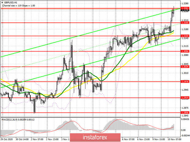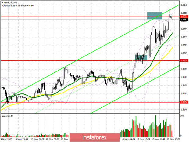 На 5-минутном графике отчетливо видно, как быки пробиваются и закрепляются выше сопротивления 1.3205, после чего еще утром я рекомендовал открывать длинные позиции. В результате рост составил более 50 пунктов и была достигнута цель 1.3261. От уровня 1.3261 я рекомендовал продавать фунт сразу на отскок с коррекцией 20-30 пунктов. В итоге так и произошло. После теста 1.3161 фунт отскочил вниз примерно на 33 пункта.На текущий момент следующей целью быков является сопротивление 1.3261, около которого сейчас и ведется основная торговля. Однако открывать оттуда длинные позиции рекомендую только после уверенного пробоя и закрепления выше этого диапазона по аналогии с утренней покупкой, которую я разбирал выше. Лишь это приведет к дальнейшему росту GBP/USD уже с выходом на максимумы 1.3315 и 1.3378, где рекомендую фиксировать прибыль. Если во второй половине дня мы будем наблюдать за нисходящей коррекцией фунта, то лучше всего не торопиться с покупками, а дождаться формирования ложного пробоя в районе 1.3205. Открывать длинные позиции сразу на отскок рекомендую от минимума 1.3154 в расчете на коррекцию в 20-30 пунктов внутри дня.