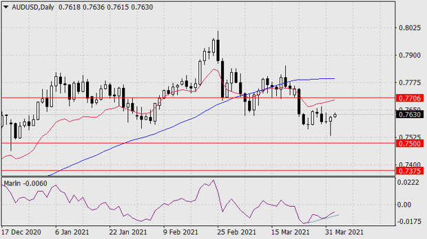 AUD/USDАвстралийский доллар вчера показал волатильный день, в котором проглядывалась борьба интересов «быков» и «медведей» перед сегодняшними данными по занятости в США. Часть игроков попросту вышла с рынка, закрыв позиции перед длинными выходными по случаю католической Пасхи. Объёмы торгов были наибольшими за неделю.