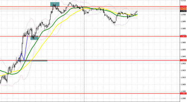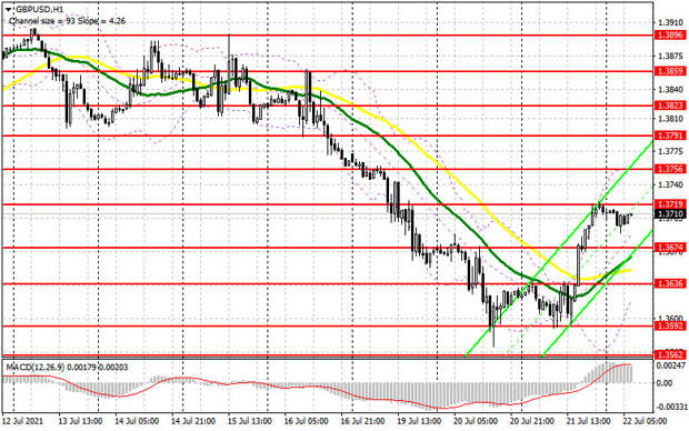 Если Броадбент займет такую же позицию, давление на GBP/USD может вернуться в первой половине дня. Быки вчера сделали все, чтобы ни только остановить нисходящий тренд, но и сделали серьезный шаг по его перелому. Сейчас акцент покупателей сделан на сопротивлении 1.3719, так как лишь прорыв и закрепление на этом уровне с обратным его тестом сверху вниз подтолкнет фунт к новым максимум 1.3756 и 1.3791. Более дальней целью выступит сопротивление 1.3823, где рекомендую фиксировать прибыль. В случае снижения пары после выступления представителя Банка Англии быки сконцентрируют свое внимание на поддержке 1.3674, чуть ниже которой проходят средние скользящие играющие на их стороне. Формирование там ложного пробоя будет сигналом на открытие новых длинных позиций в продолжение восходящей тенденции. В случае отсутствия активных действий со стороны покупателей в области 1.3674 лучше всего отложить длинные позиции до обновления минимума 1.3636, но и там можно рассчитывать на покупки лишь при условии формирования ложного пробоя. Если быстрого движения вверх от 1.3636 мы не увидим, рекомендую покупать GBP/USD сразу на отскок только от минимума 1.3592, либо еще ниже – в районе 1.3562 с целью восходящей коррекции в 25-30 пунктов внутри дня.Для открытия коротких позиций по GBP/USD требуется:
