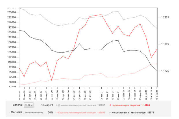 Напомню, что в COT отчете (Commitment of Traders) за 15 марта ясно видно, как происходит дальнейшее резкое сокращение длинные позиций, однако рост желающих продавать евро постепенно замедляется. Несмотря на это, рынок остается на стороне продавцов рисковых активов, что может привести к дальнейшему формированию нисходящего тренда. Это подтверждается графиком падения евро, за которым мы наблюдаем с конца февраля этого года. Резкий рост доходности десятилетних американских облигаций играет в пользу американского доллара, так как инвесторы ожидают, что именно Соединенные Штаты первыми начнут повышение процентных ставок, что делает доллар более привлекательным. Недавнее заседание Федеральной резервной системы в очередной раз убедило инвесторов в том, что американская экономика восстанавливается намного быстрей, чем ожидалось, что усиливает риск более раннего инфляционного скача. В настоящий момент лучше всего не торопиться с покупками евро, а подождать более низких цен. Еще одним фактором среднесрочного давления на евро является повторный рост заболеваемости коронавирусом в странах еврозоны и слабая программа вакцинации. Проблемы с вакциной Aztra Zeneca не добавляют уверенности инвесторам, которые ставят на более активные летние темпы роста экономики ЕС. Лишь после снятия ограничений и восстановлении сферы услуг можно ожидать улучшения экономических перспектив еврозоны, что вернет среднесрочный тренд на укрепление EUR/USD. В COT отчете указано, что длинные некоммерческие позиции сократились до уровня 195 857 с уровня 207 588, в то время как короткие некоммерческие позиции лишь выросли с уровня 105 624 до 105 881. В результате этого - общая некоммерческая нетто-позиция сократилась пятую неделю подряд до уровня 89 976 с уровня 101 964. Недельная цена закрытия составила 1.1926 против 1.1812 неделей ранее.