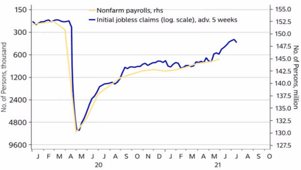Президент ФРБ Нью-Йорка утверждает, что говорить об ужесточении денежно-кредитной политики до того, как Штаты вернутся к состоянию полной занятости, не имеет смысла. Если так, то релиз данных по рынку труда США двойне важен для инвесторов.По прогнозам экспертов Bloomberg, занятость вне сельскохозяйственного сектора в июне вырастет на 600 тыс., безработица упадет до 5,7%, а средняя зарплата повысится на 0,4% м/м. Последний индикатор растет на протяжении нескольких месяцев подряд, увеличивая риски дальнейшего разгона инфляции. В то же время «ястребам» FOMC наверняка хотелось бы получить более быстрый прирост занятости. Пока стимулирующие чеки, необходимость ухода за детьми и боязнь пандемии удерживают американцев от возвращения в состав рабочей силы, однако к сентябрю ситуация должна серьезно измениться. Более того, некоторые штаты уже отменили выплаты в рамках фискальных стимулов, что должно отразиться на статистике по рынку труда уже в июне.