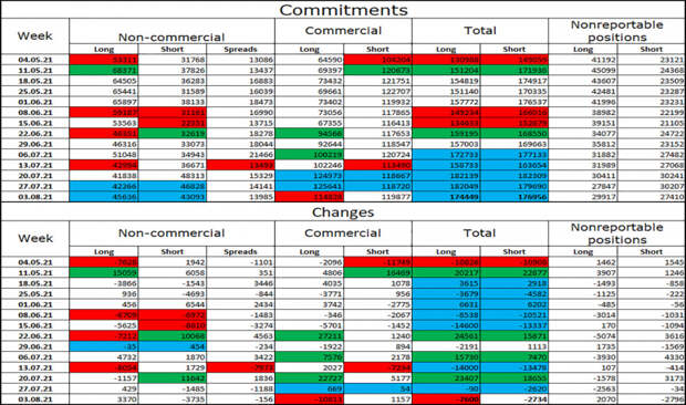 Последний отчет COT от 3 августа по британцу показал, что настроение крупных игроков изменилось на «бычье», так как на отчетной неделе спекулянты открыли 3370 контрактов Long и закрыли 3735 контрактов Short. Таким образом, общее количество контрактов Long на их руках теперь опять превышает общее количество контрактов Short. Такое изменение в настроении категории трейдеров «Non-commercial» может означать, что крупные игроки не готовы к дальнейшим распродажам британца. Если так, то британская валюта может начать вновь пользоваться спросом среди спекулянтов. Также хочу отметить, что общее количество Long и Short контрактов по всем категориям трейдеров сейчас практически совпадает. Поэтому сильного преимущества у трейдеров-быков все же пока нет. Прогноз по GBP/USD и рекомендации трейдерам: Сегодня я не рекомендую покупать пару, так как она находится в такой позиции, когда очень сложно ожидать новый рост котировок. Сигналов к покупкам британца сейчас нет. Продавать фунт стерлингов рекомендовалось на часовом графике с целью 1,3830. Этот уровень почти достигнут. Новые продажи возможны при закрытии под уровнем 1,3830 с целью 1,3776.ТЕРМИНЫ:«Non-commercial» - крупные игроки рынка: банки, хедж-фонды, инвест-фонды, частные, крупные инвесторы.«Commercial» - коммерческие предприятия, фирмы, банки, корпорации, компании, которые покупают валюту не для получения спекулятивной прибыли, а для обеспечения текущей деятельности или экспортно-импортных операций. «Non-reportable positions» - мелкие трейдеры, которые не оказывают существенного влияния на цену.
