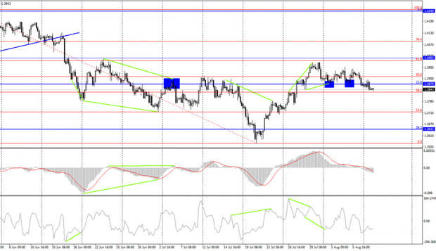 Закрытие курса пары под 1,3830 повысит шансы на продолжение падения в направлении следующего уровня Фибо 50,0% - 1,3776. Информационный фон в понедельник для британца и американца отсутствовал. В течения дня не поступило ни одной интересной новости. Таким образом, трейдеры, как и на прошлой неделе, вынуждены ждать тех дней, когда в Великобритании или США выйдут какие-либо экономические отчеты. Хотя в случае с парой фунт-доллар я все же не могу сказать, что понедельник прошел очень скучно.Если евро-доллар была практически обездвижена, то фунт-доллар все же находилась в движении. Но все же сейчас довольно тяжело спрогнозировать дальнейшее движение пары, так как не совсем ясна информационная картина. Отдельные, не связанные друг с другом, новости приходят и из Великобритании, и из США, но я не могу сделать вывод, что они оказывают хотя бы какое-то влияния на курс пары. Я уже говорил ранее, что Лондон продолжает находиться в режиме конфронтации с Брюсселем по поводу Brexit'a и североирландского протокола, а в США тем временем растет количество случаев заражения дельта-штаммом коронавируса, а в Конгрессе продолжаются жаркие баталии по вопросам повышения лимита государственного долга, чтобы избежать банкротства страны, и двух пакетов финансирования, которые будут направлены на развитие инфраструктуры и решение социальных вопросов.