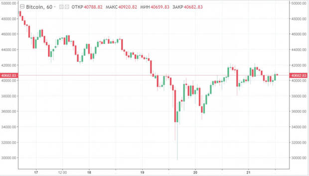 Однако, учитывая определенные факторы, говорить о начале затяжного роста все еще рано.Прежде всего нужно понимать, что главной причиной падения котировок биткоина стал резко отрицательный новостной фон. И даже несмотря на то, что большинство негатива было отыграно рынком (что и вылилось в падение до 30$ тысяч), у биткоина остается достаточно оснований для того, чтобы вновь свалиться до 30$-35$ тысяч. Вместе с тем по состоянию на 13:00 можно утверждать, что криптовалюта нащупала твердое дно, откуда и начала расти в цене за счет притока институциональных инвесторов. Кроме того, у монеты появилась более стабильная динамика изменения цены, которая указывает на то, что актив подорожал на 2% за последние сутки. Более узкая динамика показывает рост котировок BTC на 1%. При этом объемы суточных торгов после вчерашнего всплеска вернулись к средним показателям в районе 78$ миллиардов.