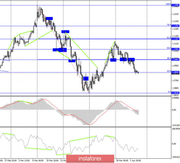 Новости, поступающие из различных точек мира, остаются неутешительным. Вирус COVID-2019 продолжает распространяться, и сегодня официальное число заразившихся людей по всему миру перевалило за 1 000 000. Больше всего заболевших граждан именно в Америке, но на американскую валюту это никакого негативного впечатления не производит. Также вчера трейдеры с большим удовольствием пропустили мимо себя важный экономический отчет из США по безработице...EUR/USD – 4H.
