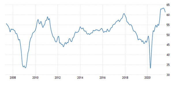 Хотя, скорее всего дело в том, что рынок ждал гораздо более значимых данных, которые публиковались несколько позже.Индекс деловой активности в производственном секторе (Европа):