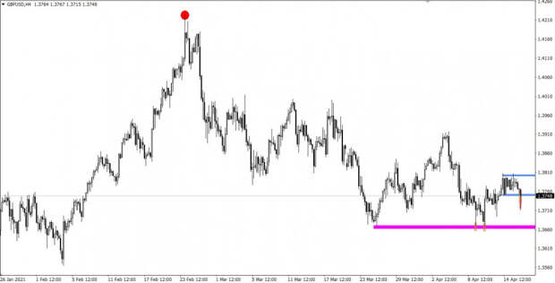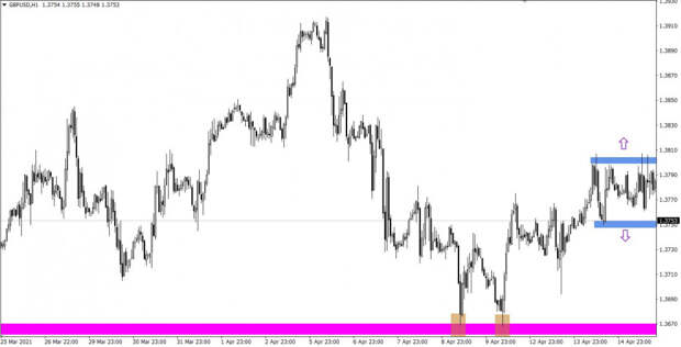 Торговая рекомендация от 15 апреля рассматривала процесс застоя в границах 1,3750/1,3800 как рычаг предстоящего ускорения, работая по принципу пробоя той или иной границы.