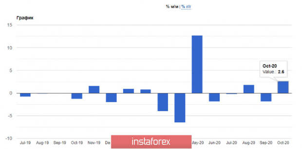 Прирост розничных продаж в Германии в октябре этого года также положительно сказался на евро. Стоит отметить, что в целом последние новости по Германии выходят довольно хорошие, что указывает на то, как страна справляется со вторым локдауном из-за пандемии коронавируса. Рост розничных продаж положительно скажется на темпах рост экономики в 4-м квартале этого года. Согласно данным, розничные продажи в Германии в октябре 2020 года выросли на 2,6% по сравнению с предыдущим месяцем. По сравнению с тем же периодом предыдущего года продажи подскочили на 8,2%.