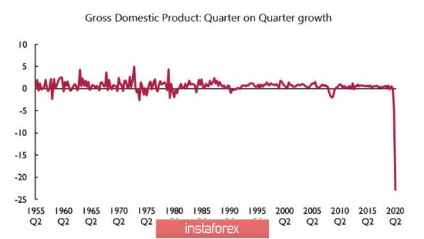 NIESR оценил падение ВВП за 3 месяца по февраль включительно в 0.1%, но озвучил гораздо более мрачные прогнозы относительно 2 квартала. По его мнению карантин, вызывает крупнейшее с 1921г. сокращение экономической активности, и прогнозируется снижение ВВП на 5% в 1 квартале и на 15-25% - во втором. График из отчета NIESR говорит сам за себя: