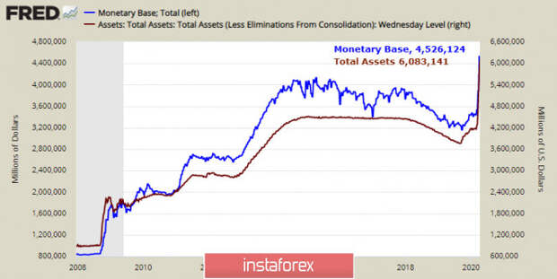 ФРС продолжает накачивать рынки ликвидностью. Менее чем за месяц баланс ФРС вырос на 1.7 трлн. долл., денежная база более чем на 1.трлн. Несмотря на то, что вся эта наличная масса востребована на этапе углубления кризиса, такие шаги для доллара не могут пройти бесследно.