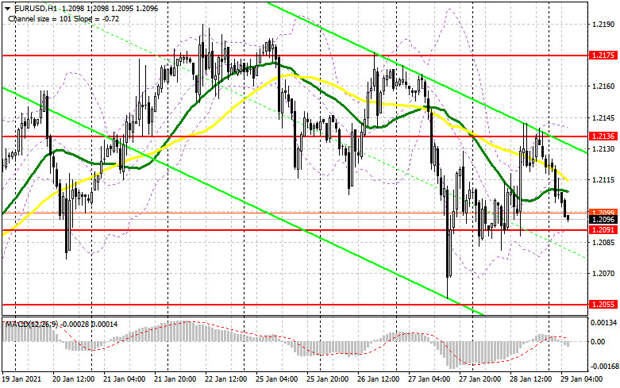 Прорыв нижней границы в области 1.2091 усилит давление на евро. Рост будет ограничен верхним уровнем индикатора в районе 1.2136.