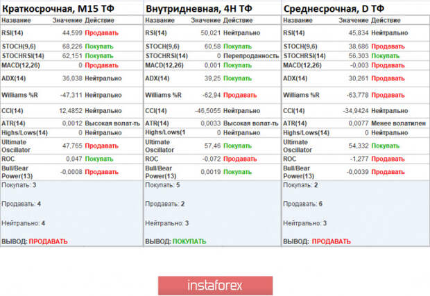 Анализируя разный сектор таймфреймов (ТФ), мы видим, что показатели технических инструментов на минутных интервалах сигнализируют о продаже за счет движения котировки в нижней части амплитуды. Часовой период имеет переменный сигнал покупка/продажа. Дневной период, как и прежде, сигнализирует о продаже за счет масштаба снижения за сентябрь.