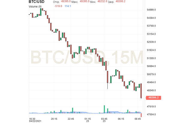 Напомним, что глава Белого дома готов увеличить ставку налога на прирост капитала для тех, кто зарабатывает более $1 млн в год. По данным агентства Bloomberg, повышение будет двукратным: с текущих 20% до 39,6%. Наряду с налогом на инвестиционный доход совокупный объем ставки федерального налога для инвесторов составит 43,4%.Инициатива американского лидера нанесла урон рынку акций США. Американские фондовые индексы подешевели примерно на 1% после заявлений главы Белого дома. Следом за ними просел и крипторынок, увлекая за собой биткоин. Утром в пятницу, 23 апреля, первая криптовалюта подешевела на 8%. Пара BTC/USD торговалась вблизи $48 300, не удержавшись выше $50 000. В последний раз первая криптовалюта падала до такого уровня в начале марта этого года. В самом начале дня ведущий цифровой актив курсировал в диапазоне $49 170– $49 200. Напомним, что прежний рекорд биткоина составил $64 500 и до сих пор не побит.